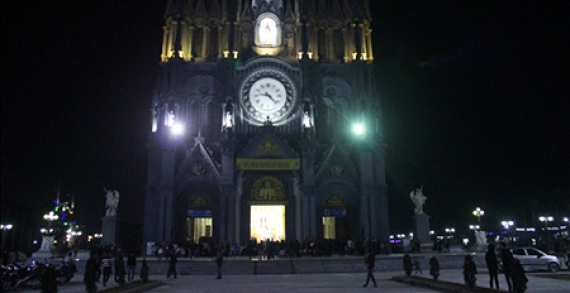 Người dân công giáo xã Vân Trường đi lễ nhà thờ chuẩn bị đón giao thừa. Ảnh: Mạnh Thắng