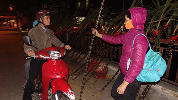Người dân mua mía lộc. Ảnh: Thanh Huyền