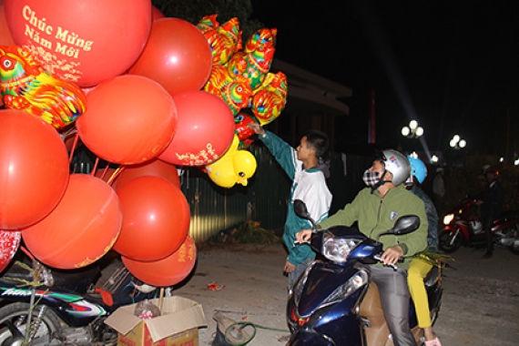 Trong tiết trời lạnh của ngày cuối năm, mặc dù đã 18 giờ, nhưng tại các chợ hoa, cửa hàng tạp hóa… hoạt động mua bán của người dân vẫn diễn ra tấp nập. Từ khắp nơi, nhiều bạn trẻ cùng người thân rộn ràng ra đường tìm đến các điểm vui chơi khiến cho không khí càng lúc càng náo nhiệt. Đi trên những con đường nông thôn mới được trang hoàng bởi cờ, hoa, đèn lộng lẫy, được nghe những bài hát rộn rã ca ngợi Đảng, Bác Hồ, ca ngợi tình yêu quê hương, đất nước khiến cho mọi người như được hòa mình trong không khí vui tươi, háo hức chờ đón giao thừa đang đến gần.