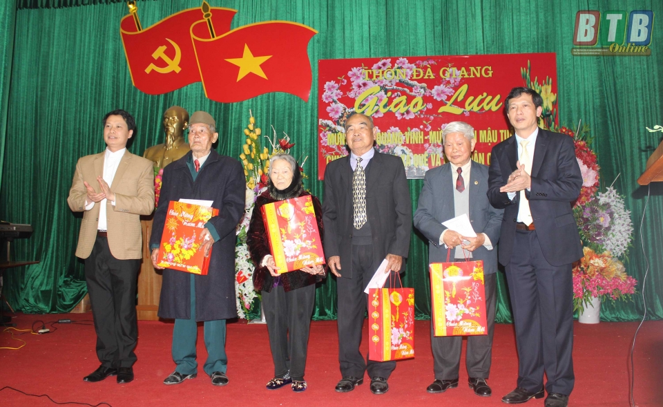 Lãnh đạo tỉnh và huyện Đông Hưng chúc mừng năm mới và tặng quà các cụ nhiều tuổi đảng thôn Đà Giang (Nguyên Xá)