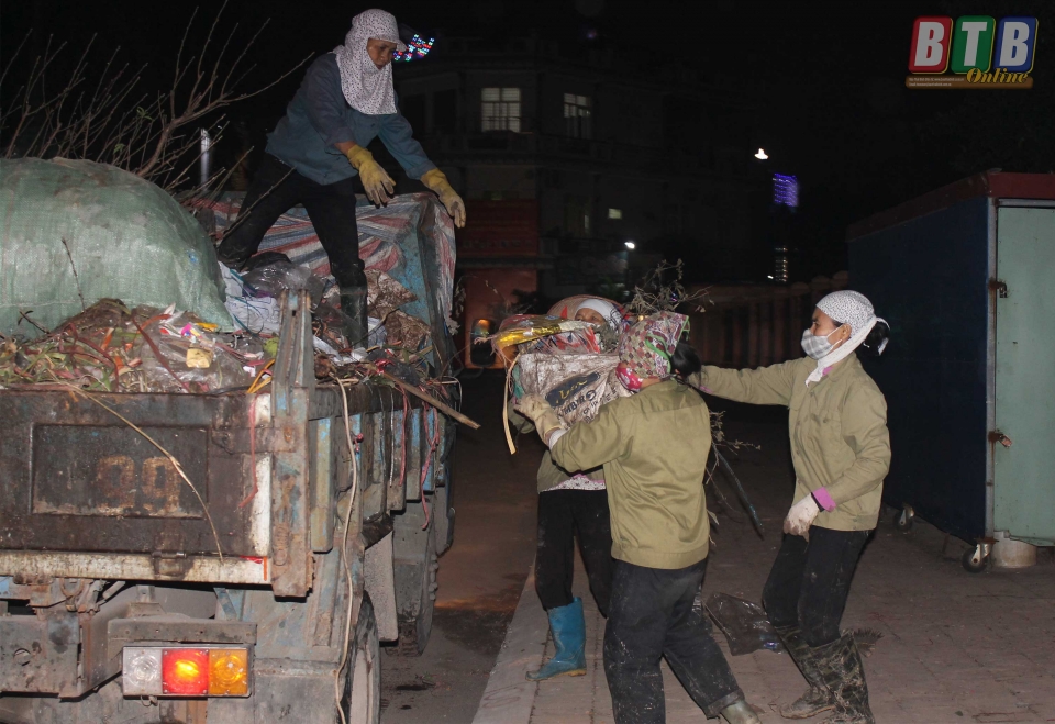 Bà Trịnh Thị Bốn, thành viên tổ thu gom rác thải thị trấn Vũ Thư chia sẻ: “Những ngày này, tôi phải nhờ gia đình chuẩn bị mâm cơm cúng giao thừa, còn tôi cùng tổ thu gom rác thải tranh thủ làm thật nhanh, quét dọn thật sạch sẽ, có thể hết đêm giao thừa, để đến sáng mùng 1, tất cả đường phố thật sạch, thật đẹp phục vụ bà con đón tết. Đó cũng là niềm vui của chúng tôi trong đêm giao thừa”.