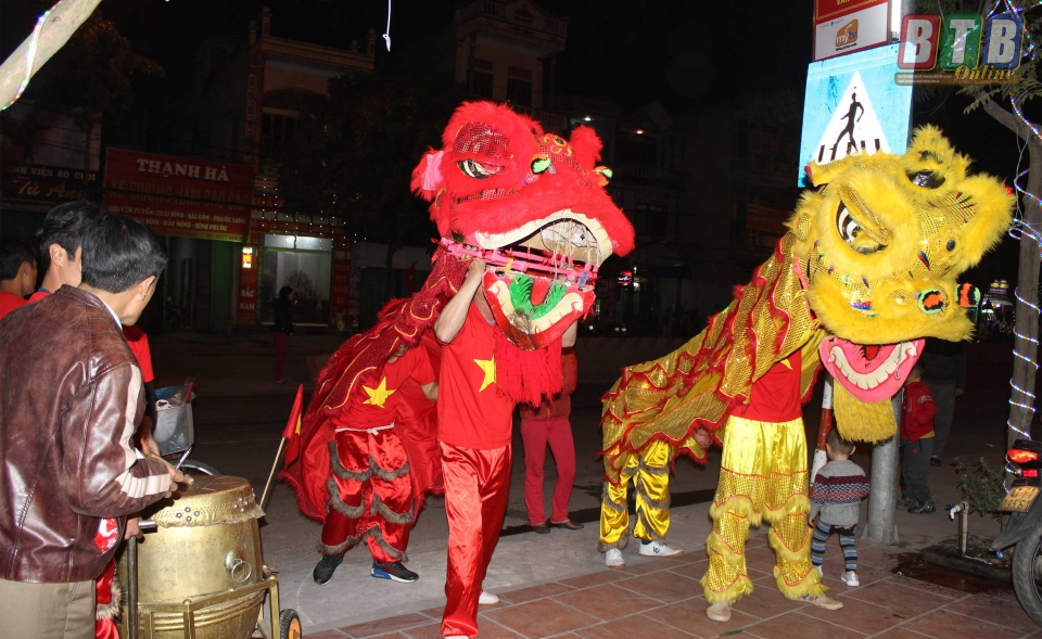 Trước thời khắc giao thừa Mậu Tuất 2018, dọc các phố đều rực rỡ cờ hoa và đèn trang trí. Không chỉ ở trung tâm huyện mà không khí đón xuân còn lan đến từng con hẻm, từng thôn, xóm. Thời tiết năm nay ấm áp nên từ sớm nhiều nam thanh, nữ tú đã ra đường, tìm đến trung tâm huyện, nhà văn hóa xã, nhà văn hóa thôn để cùng thưởng thức các chương trình văn nghệ mừng Đảng, mừng Xuân do cấp ủy, chính quyền các cấp tổ chức. Các chương trình ca nhạc hầu hết do các nghệ sĩ, diễn viên các câu lạc bộ đến từ các xã, thị trấn biểu diễn ca ngợi Đảng, Bác Hồ, quê hương, đất nước đẹp giàu. Đây là một trong những hoạt động truyền thống được tổ chức như những lời chúc tốt đẹp nhất tới mỗi người, mỗi gia đình khi tết đến, xuân về.