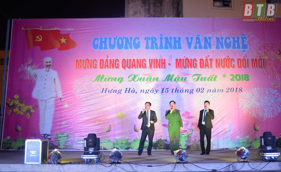 Năm nay, trên địa bàn huyện Hưng Hà ngoài chương trình ca múa nhạc mừng Đảng, mừng xuân ở trung tâm huyện, nhiều thôn làng, khu dân cư trên địa bàn còn tổ chức các hoạt động văn hóa, văn nghệ đón chào năm mới tại nhà văn hóa thôn, đình làng.