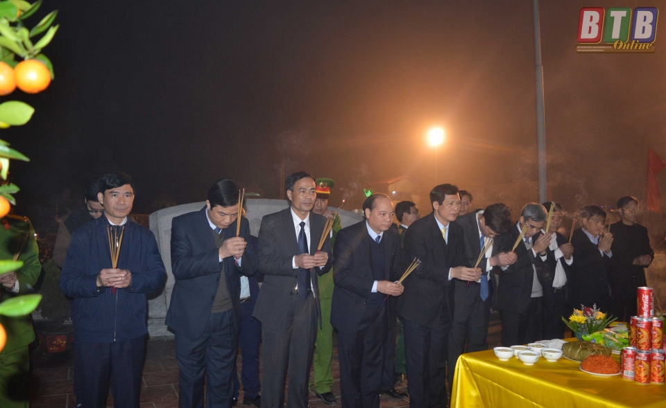Vui xuân, nhưng người dân ở huyện Hưng Hà luôn tưởng nhớ đến những người con quê hương đã hy sinh vì nền độc lập tự do của Tổ quốc. Nhiều người dân đến Quảng trường đã vào Đền thờ Liệt sĩ của huyện thắp nén nhang tưởng nhớ các liệt sĩ. Trước thời khắc giao thừa cũng là thời điểm bà con hay lên chùa làm lễ. Nét đẹp văn hóa này không chỉ đơn thuần là cầu tài, cầu lộc mà đó còn là thời điểm để mỗi người nhìn lại bản thân mình, mong chờ một năm mới an lành.