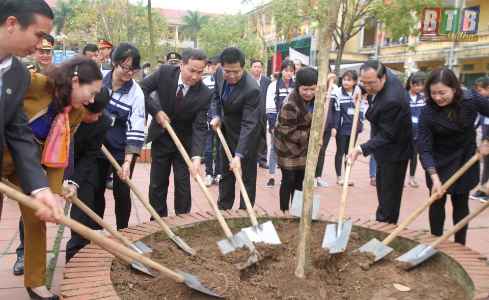 * Tại Trường THPT Quỳnh Thọ, xã Quỳnh Thọ, UBND huyện Quỳnh Phụ tổ chức phát động Tết trồng cây đời đời nhớ ơn Bác Hồ xuân Mậu Tuất 2018.