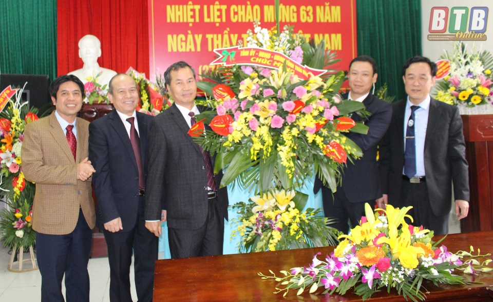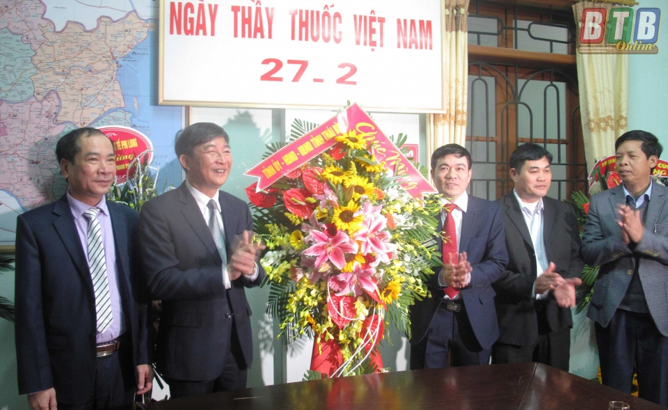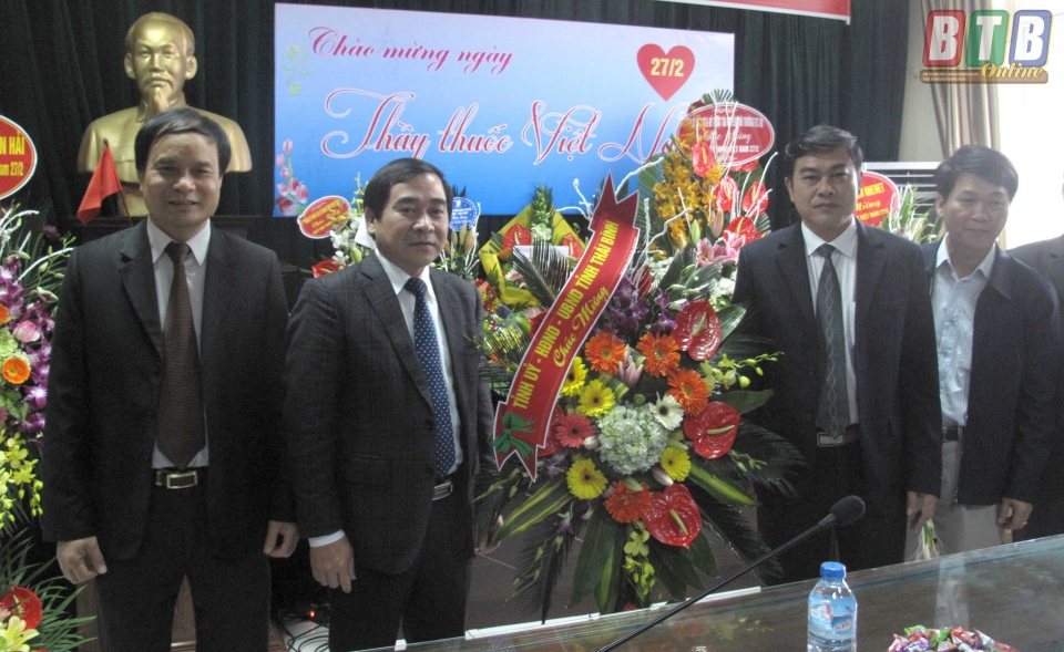 * Các đồng chí: Phạm Văn Sinh, Bí thư Tỉnh ủy; Nguyền Hồng Diên, Ủy viên Trung ương Đảng, Phó Bí Thư Tỉnh ủy, Chủ tịch UBND tỉnh; Đặng Trọng Thăng, Phó Bí thư thường trực Tỉnh ủy, Chủ tịch HĐND tỉnh; các đồng chí lãnh đạo HĐND, UBND tỉnh; lãnh đạo các sở, ban, ngành đã đến chúc mừng đội ngũ cán bộ, thầy thuốc Sở Y tế.