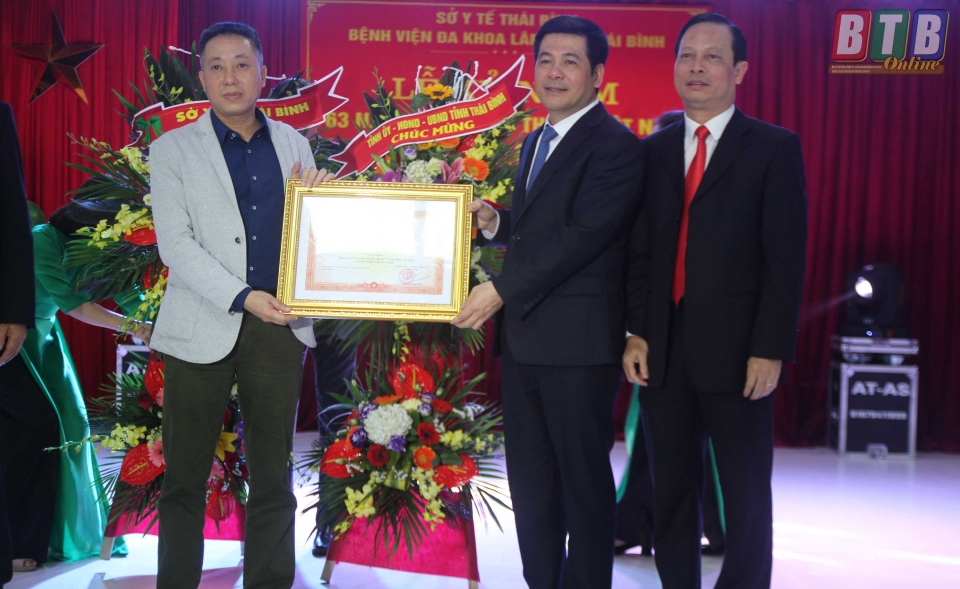 Thừa ủy quyền của Thủ tướng Chính phủ, đồng chí Nguyễn Hồng Diên, Ủy viên Trung ương Đảng, Phó Bí thư Tỉnh ủy, Chủ tịch UBND tỉnh trao tặng Bằng khen cho Bệnh viện Đa khoa tư nhân Lâm Hoa. Ảnh: Trịnh Cường
