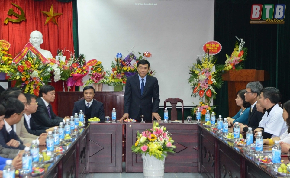 Phát biểu với đội ngũ thầy thuốc, cán bộ y tế Bệnh viện, đồng chí Bí thư Tỉnh ủy ghi nhận những kết quả đạt được của Bệnh viện trong việc đầu tư, nâng cấp cơ sở vật chất, nâng cao chuyên môn nghiệp vụ, năng lực khám, chữa bệnh và tinh thần phục vụ người bệnh của bệnh viện. Đồng chí cũng mong muốn trong thời gian tới cán bộ, y, bác sĩ, nhân viên, người lao động tiếp tục không ngừng học tập nâng cao trình độ chuyên môn, rèn luyện y đức thực sự là những người thầy thuốc, cán bộ ưu tú trong đơn vị y tế lớn nhất toàn ngành, có nhiều đóng góp tích cực trong việc chăm sóc sức khỏe nhân dân.