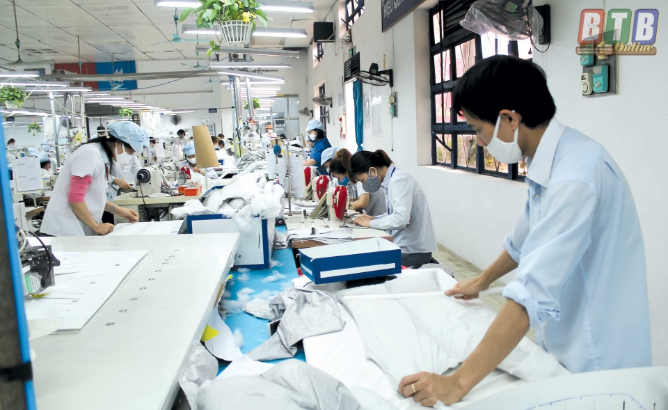 Công nhân Xí nghiệp May Đông Hưng (Tổng công ty May 10) thi đua lao động giỏi, lao động sáng tạo.
