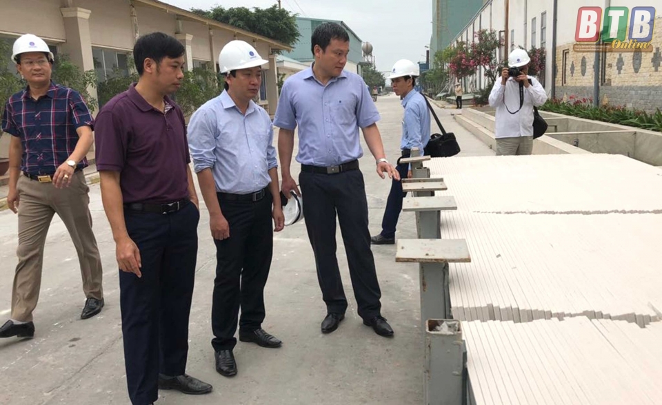 Các thành viên trong đoàn thăm Nhà máy Viglacera Thái Bình.