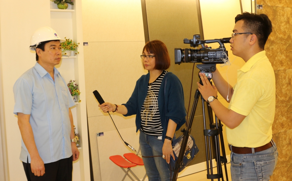 Phóng viên tác nghiệp tại Xí nghiệp Phân phối khí thấp áp miền Bắc.