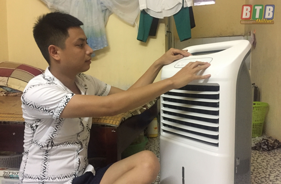 Hai vợ chồng anh Đặng Văn Dũng và chị Phan Thị Huế đang ở trọ tại thôn Đại Lai, xã Phú Xuân chia sẻ: hai vợ chồng phải vừa quyết định đầu tư mua một cái quạt điều hòa hơn 2 triệu đồng. Mặc dù có thêm quạt điều hòa, song tại phòng trọ 15 m2 bao gồm cả công trình vệ sinh, nơi nấu nướng, không khí vẫn ngột ngạt, bức bối mặc dù đó là thời điểm nắng đã tắt.