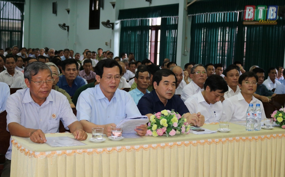 Các đồng chí: Đặng Trọng Thăng, Phó Bí thư thường trực Tỉnh ủy, Chủ tịch UBND tỉnh; Nguyễn Hồng Chuyên, Ủy viên Ban Thường vụ, Trưởng ban Tuyên giáo Tỉnh ủy; Nguyễn Tiến Thành, Ủy viên Ban Thường vụ, Trưởng ban Dân vận Tỉnh ủy; lãnh đạo một số sở, ban, ngành của tỉnh dự hội nghị.