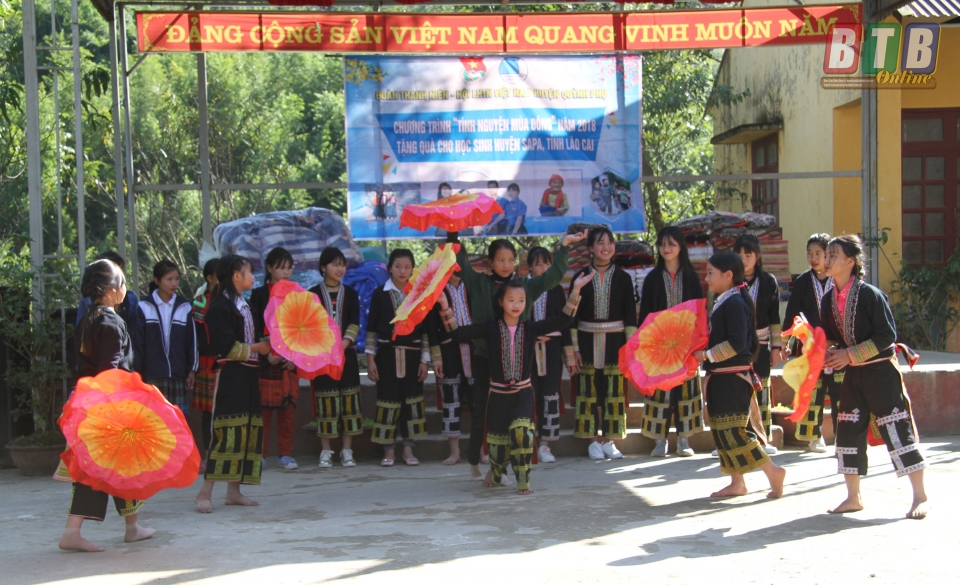 Ngoài việc thăm hỏi, tặng quà, thành viên đoàn tình nguyện đã tổ chức giao lưu văn nghệ với các tiết mục ca ngợi Đảng, Bác Hồ, ca ngợi quê hương Thái Bình – Lào Cai, mang lại không khí vui tươi, sôi nổi tới giáo viên, học sinh các điểm trường và nhân dân địa phương.
