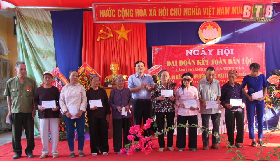 Nhân dịp này, đồng chí Ngô Đông Hải, Ủy viên dự khuyết Trung ương Đảng, Phó Bí thư thường trực Tỉnh ủy đã trao tặng làng Hoành Sơn 10.000.000 đồng; trao tặng 1 công trình xây dựng nhà đại đoàn kết trị giá 40.000.000 đồng từ Quỹ vì người nghèo tỉnh; đồng chí Đoàn Hồng Kỳ, Ủy viên Ban Thường vụ Tỉnh ủy, Giám đốc Sở Kế hoạch và Đầu tư, lãnh đạo huyện Thái Thụy trao quà của tỉnh, huyện tới 16 đối tượng chính sách và hộ nghèo của làng Hoành Sơn trị giá 500.000 nghìn đồng/suất.