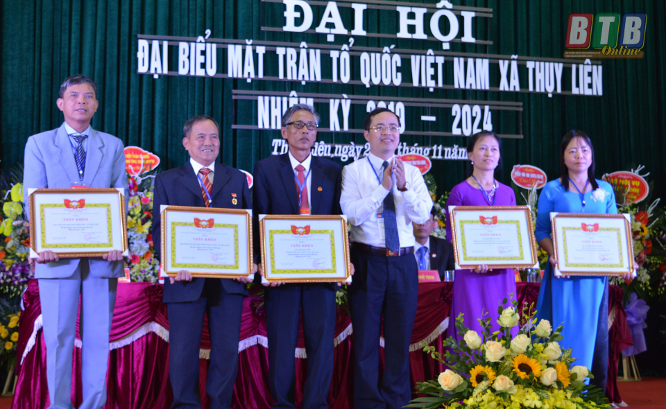 Đại diện UBND huyện Thái Thụy tặng giấy khen cho các cá nhân có nhiều đóng góp cho công tác mặt trận trong nhiệm kỳ qua.
