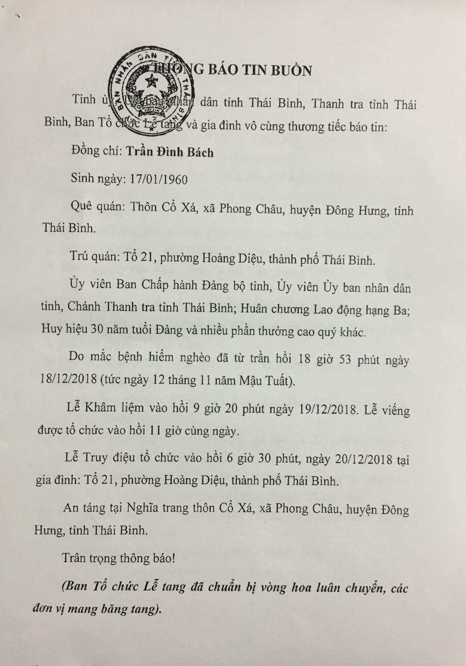 Thông báo tin buồn