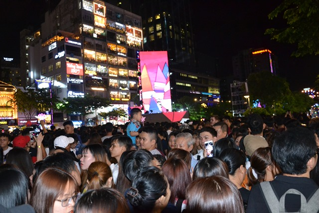 * Đêm 31-12, người dân đã đổ về trung tâm TP Hồ Chí Minh để thưởng thức những chương trình biểu diễn nghệ thuật đặc sắc. Tại đường Lê Duẩn, chương trình Đêm nhạc tri ân khán giả TP và người hâm mộ bóng đá đã thu hút đông đảo khán giả từ rất sớm.