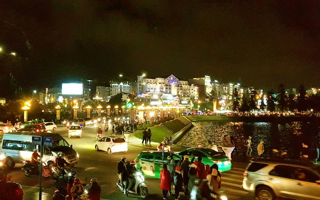Một góc phố núi Đà Lạt đêm giao thừa.