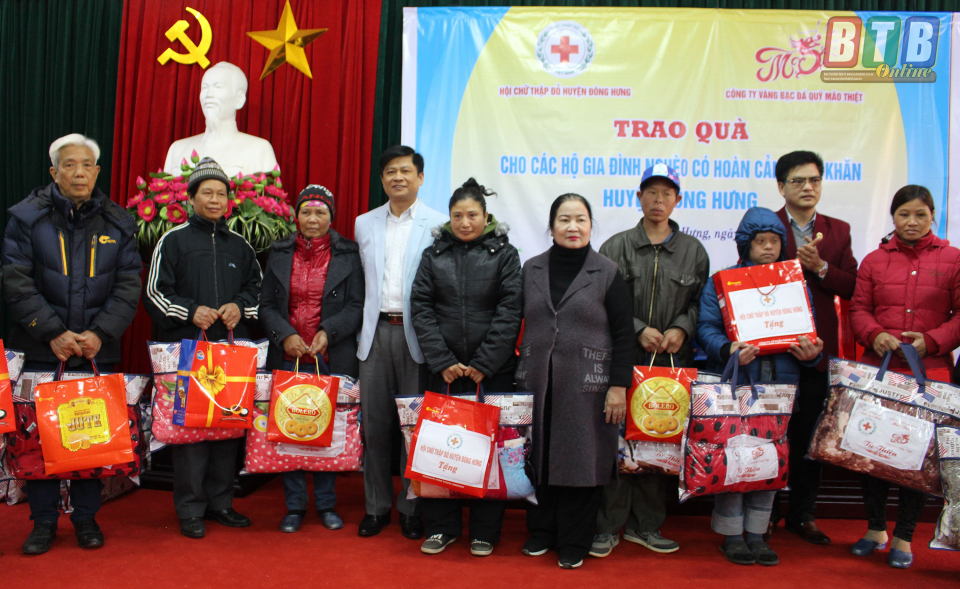 440 suất quà gồm chăn và tiền mặt được trao tặng cho các hộ có hoàn cảnh khó khăn tại các xã, thị trấn trong huyện; mỗi suất trị giá 300.000 đồng. Đây là những suất quà do Hội Chữ thập đỏ tỉnh vận động Công ty TNHH Vàng bạc đá quý Mão Thiệt tài trợ và Hội Chữ thập đỏ huyện trích quỹ nhân đạo trao tặng.