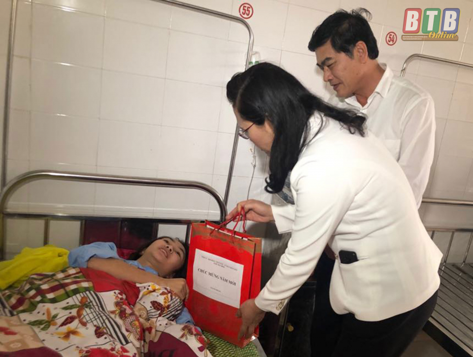 Thay mặt Tỉnh ủy, HĐND, UBND tỉnh, đồng chí Nguyễn Thị Lĩnh, Tỉnh ủy viên, Phó Chủ tịch UBND tỉnh tặng quà và chúc tập thể cán bộ, y bác sĩ các đơn vị đón tết vui vẻ, năm mới nhiều thắng lợi mới. Đồng chí Phó Chủ tịch UBND tỉnh cùng lãnh đạo Sở Y tế, lãnh đạo Sở Lao động -Thương binh và Xã hội tỉnh cũng đã đến các khu điều trị bệnh nhân nặng, thăm hỏi động viên, tặng quà, chúc các bệnh nhân mau khỏe, đón năm mới an vui, đầm ấm.