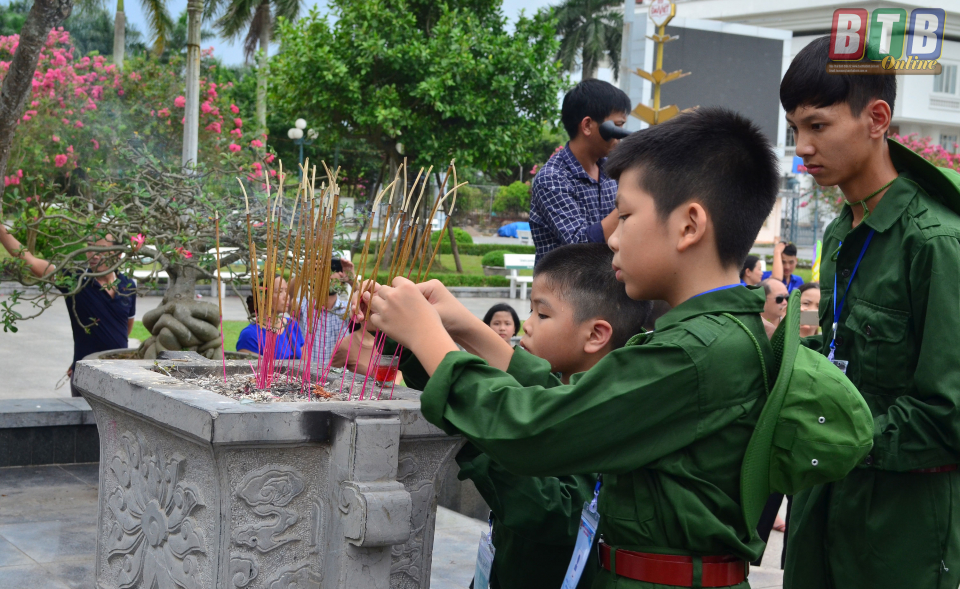 Trong lễ xuất quân, các học viên đã dâng hương tưởng niệm đồng chí Nguyễn Đức Cảnh tại Quảng trường 14/10. Sau buổi lễ, các em di chuyển về Trường Quân sự tỉnh để bắt đầu học tập.