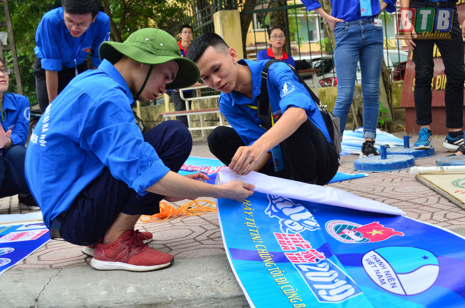 Các đội hình thanh niên tình nguyện chuẩn bị cho hoạt động tiếp sức mùa thi 2019.