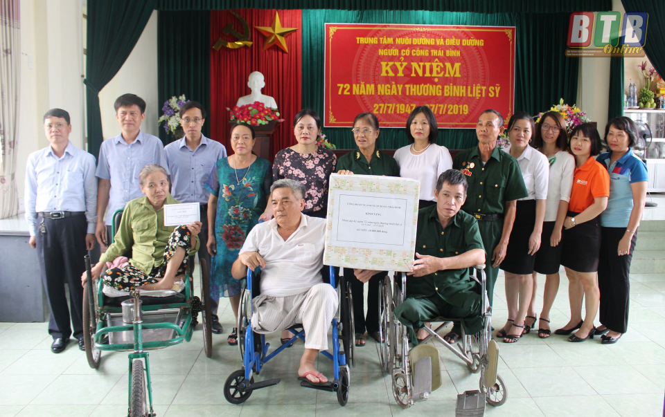 Đến thăm, tặng quà người có công tại Trung tâm Nuôi dưỡng và Điều dưỡng người có công tỉnh Thái Bình, đại diện Công đoàn Ngân hàng Việt Nam tại Thái Bình đã gửi lời chúc sức khỏe tới các thương binh, bệnh binh đang sinh sống, điều trị tại Trung tâm và mong các thương binh, bệnh binh nỗ lực vượt qua nỗi đau của bệnh tật để vươn lên trong cuộc sống.