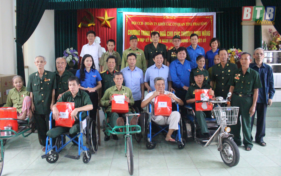 * Lãnh đạo đại diện Hội Cựu chiến binh, Đoàn Thanh niên Khối các cơ quan tỉnh đã đến thăm, tặng quà các thương binh, bệnh binh nặng tại Trung tâm Nuôi dưỡng và Phục hồi chức năng người có công tỉnh.