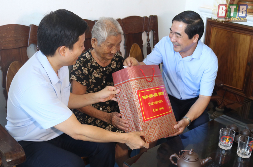 * Tại huyện Kiến Xương, đồng chí Hà Công Toàn, Ủy viên Ban Thường vụ, Chủ nhiệm Ủy ban Kiểm tra Tỉnh ủy cùng các đồng chí lãnh đạo Sở Lao động – Thương binh và Xã hội, Sở Văn hóa, Thể thao và Du lịch và lãnh đạo huyện Kiến Xương đã đến thăm hỏi, tặng quà bà Nguyễn Thị Ba, vợ liệt sĩ và ông Nguyễn Ngọc Đức, thương binh loại 1/4 (thị trấn Thanh Nê).