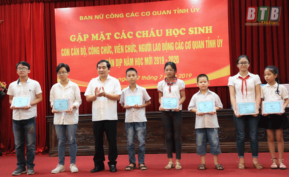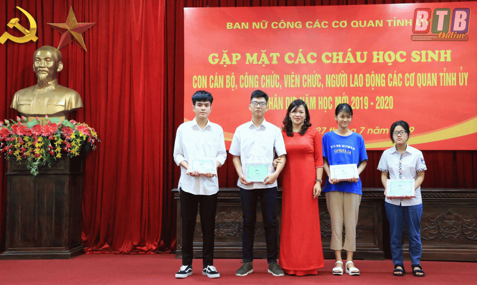 Tiếp nối truyền thống khuyến học, khuyến tài của các cơ quan Tỉnh ủy, Ban Nữ công đã tổ chức gặp mặt, kịp thời biểu dương, khen thưởng các cháu có thành tích học tập cao; khích lệ các cháu tiếp tục nỗ lực, vươn lên học tập tốt. Buổi gặp mặt cũng thể hiện sự quan tâm của các bác lãnh đạo Tỉnh ủy, lãnh đạo Ban Nữ công và các cơ quan trực thuộc Tỉnh ủy đối với thế hệ mầm non tương lai của đất nước nói chung, con CBCCVCNLĐ các cơ quan trực thuộc Tỉnh ủy nói riêng.