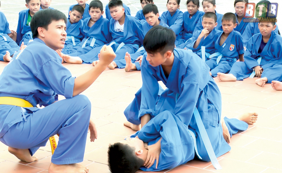 Lớp dạy võ thu hút đông đảo học sinh xã Thái Thượng (Thái Thụy) tham gia.
