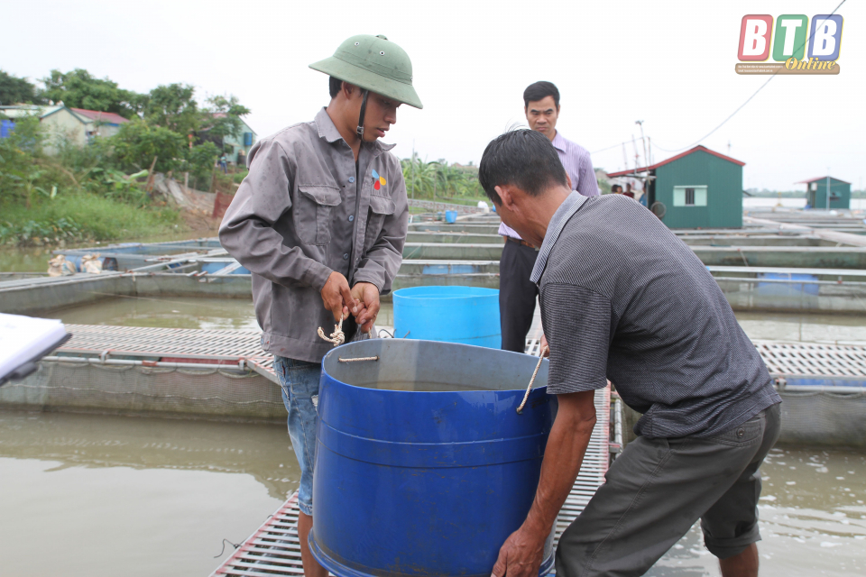 Các hộ nuôi cá lồng xã Quỳnh Ngọc (Quỳnh Phụ) khẩn trương chằng buộc lồng bè, bảo vệ vật nuôi ứng phó với bão số 3.