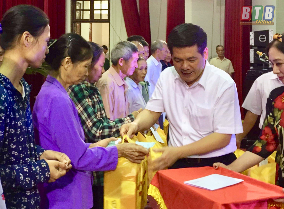 Đồng chí Nguyễn Hồng Diên, Uỷ viên Trung ương Đảng, Bí thư Tỉnh uỷ, Chủ tịch HĐND tỉnh tặng quà cho các nạn nhân CĐDC.