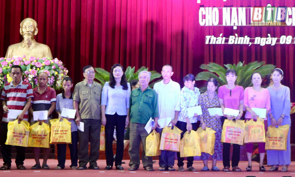 Nhân dịp này, Trung ương Hội Nạn nhân CĐDC/Điôxin đã tặng kỷ niệm chương cho 74 cá nhân có thành tích xuất sắc trong sự nghiệp chăm sóc, giúp đỡ nạn nhân CĐDC. Tỉnh uỷ, HĐND, UBND tỉnh đã trao tặng 140 suất quà với tổng trị giá 28 triệu đồng cho 140 nạn nhân da cam của 4 huyện: Kiến Xương, Vũ Thư, Đông Hưng, Thành phố.