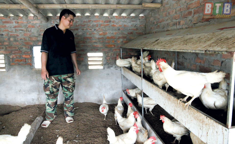 Mô hình nuôi gà thịt, gà trứng của thành viên Bùi Văn Thiện (thôn Tiền Phong, xã Vũ Tây) cho thu nhập hơn 100 triệu đồng/năm.