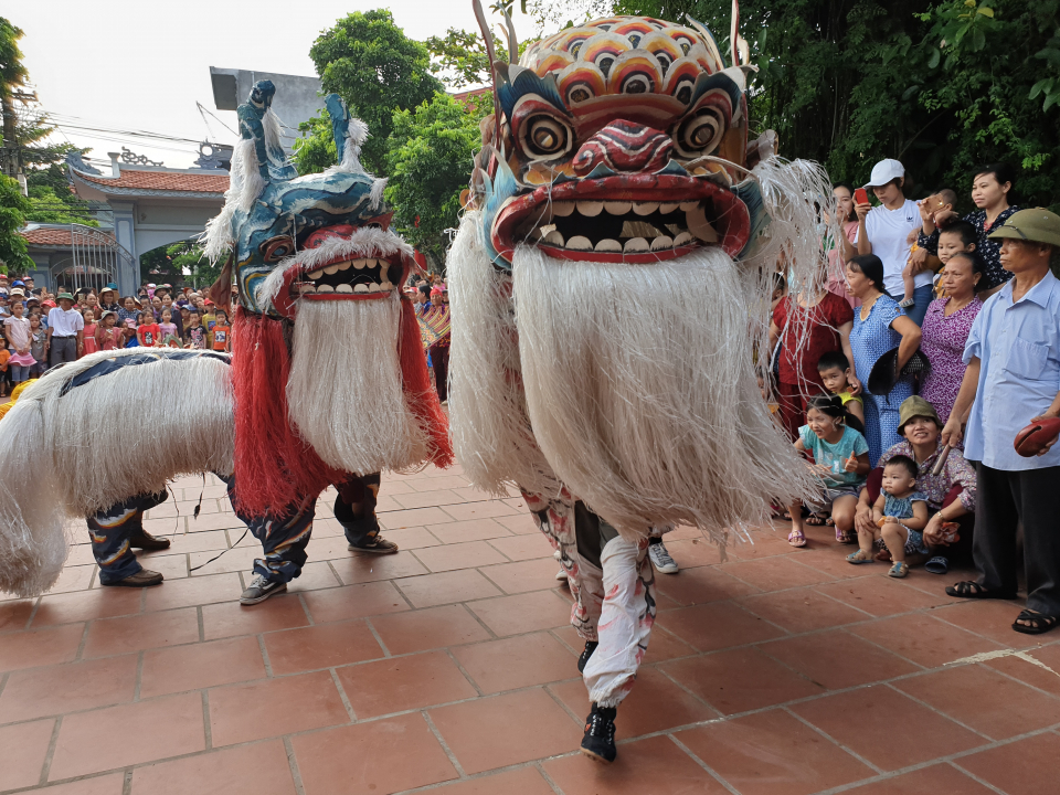 Những màn múa tứ linh thu hút sự quan tâm của đông đảo người dân luôn tạo nên không khí náo nức của một ngày hội.
