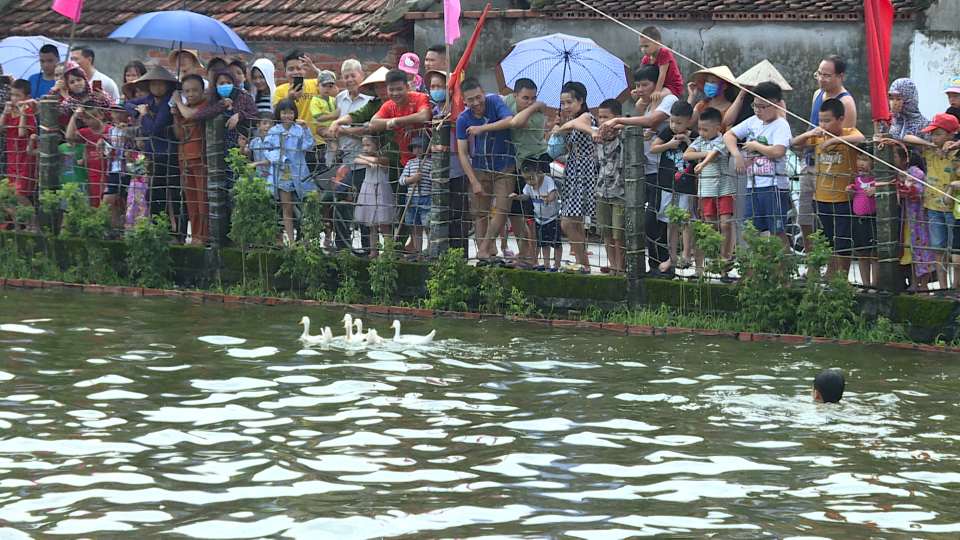 Trong dòng người trang nghiêm dâng hương lên các anh hùng liệt sỹ, chị Trần Thị Toan rưng rưng xúc động chia sẻ: con cháu xa quê có bận mải tới đâu thì ngày này cũng cố gằng trở về quê hương để thắp nén hương lên bàn thờ tổ tiên, để thăm ông bà cha mẹ và tham gia những trò chơi dân gian gắn kết tình làng nghĩa xóm.