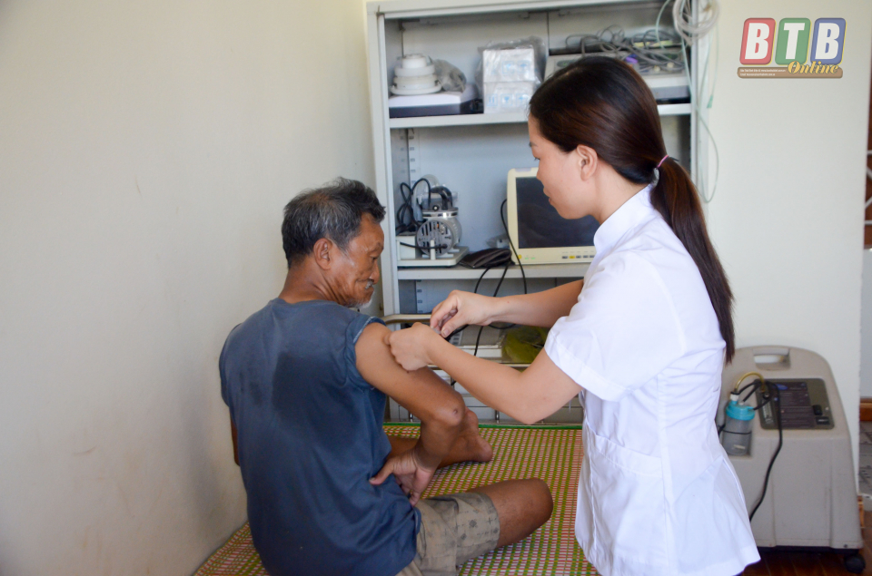 Cán bộ y tế khám bệnh cho người cao tuổi sống tại Trung tâm.