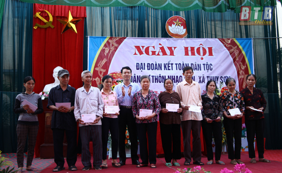 Thay mặt Tỉnh ủy, HĐND, UBND, Ủy ban MTTQ tỉnh, đồng chí Nguyễn Hoàng Giang, Tỉnh ủy viên, Phó Chủ tịch UBND tỉnh đã tặng hoa và quà, chúc mừng cán bộ và nhân dân thôn Nhạo Sơn nhân ngày hội đại đoàn kết toàn dân tộc. Đồng chí Phó Chủ tịch UBND tỉnh ghi nhận và đánh giá cao kết quả mà nhân dân thôn Nhạo Sơn đạt được trong thời gian qua và mong muốn Ban công tác mặt trận thôn tiếp tục động viên nhân dân, các dòng họ tích cực phát triển kinh tế, nâng cao đời sống của nhân dân trong thôn. Bà con trong thôn phát huy tinh thần đoàn kết, giúp đỡ những hộ nghèo, hộ đơn thân vơi bớt khó khăn trong cuộc sống; xây dựng nếp sống văn hóa, đạo đức gia đình, nếp sống văn minh trong tổ chức việc cưới, việc tang, lễ hội; đẩy mạnh học tập và làm theo tư tưởng, đạo đức, phong cách Hồ Chí Minh. Cán bộ và nhân dân thôn Nhạo Sơn tiếp tục phát huy tinh thần đoàn kết, năng động, sáng tạo triển khai thực hiện toàn diện, hiệu quả cuộc vận động "Toàn dân đoàn kết xây dựng nông thôn mới, đô thị văn minh", chú trọng giải quyết những vấn đề bức xúc ở cơ sở, xây dựng dòng họ, ngõ xóm tự quản, góp phần thúc đẩy kinh tế - xã hội phát triển.