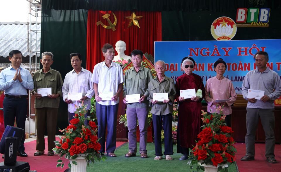 Đồng chí Đặng Thanh Giang, Ủy viên Ban Thường vụ Tỉnh ủy, Chủ tịch Ủy ban MTTQ Việt Nam tỉnh tặng hoa và quà cho khu dân cư làng Hà Lang.