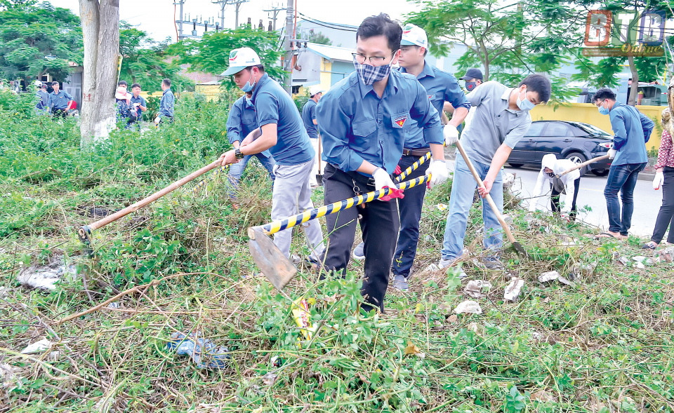 Đoàn viên thanh niên Sở Tài nguyên và Môi trường tích cực tham gia các hoạt động vệ sinh môi trường.