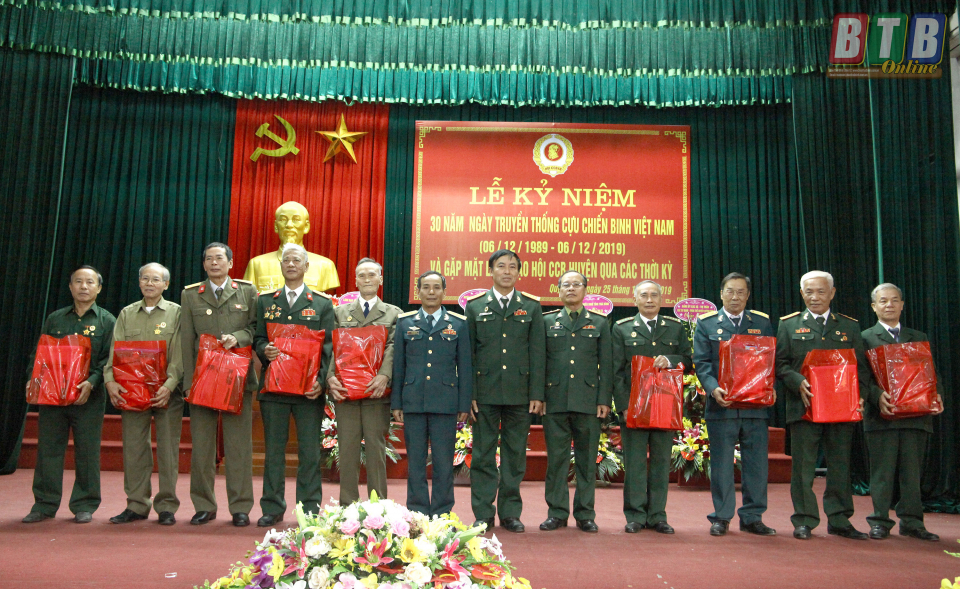 Trao quà cho lãnh đạo Hội CCB huyện qua các thời kỳ.