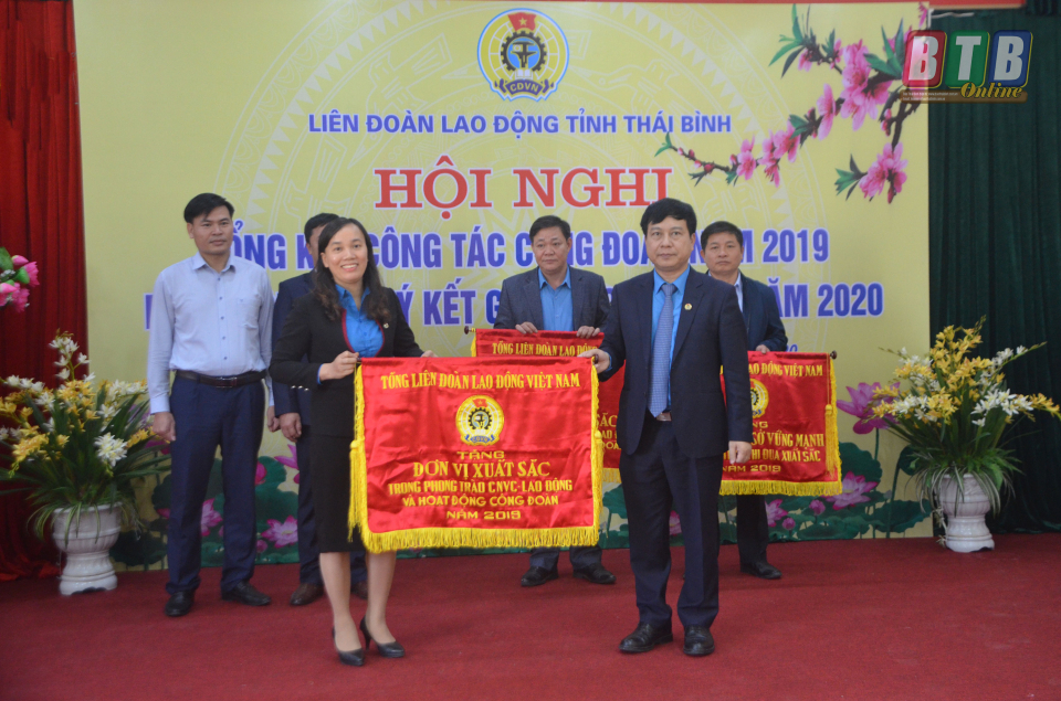 Lãnh đạo Tổng Liên đoàn Lao động Việt Nam trao cờ thi đua cho các tập thể có nhiều đóng góp cho hoạt động công đoàn năm 2019.