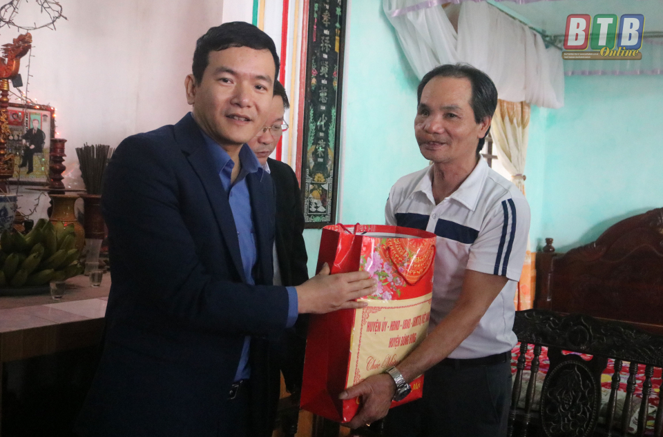 Lãnh đạo huyện Đông Hưng tặng quà tết thương binh ¼ Phạm Huy Lin, xã Liên Giang.
