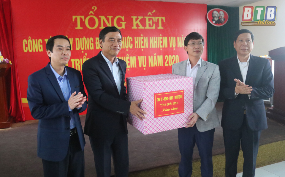 Đồng chí Đặng Trọng Thăng, Phó Bí thư Tỉnh ủy, Chủ tịch UBND tỉnh; đồng chí Vũ Mạnh Hiền, Tỉnh ủy viên, Phó Chủ tịch HĐND tỉnh cùng lãnh đạo Sở Lao động - Thương binh và Xã hội tặng quà tết cho cán bộ địa phương.