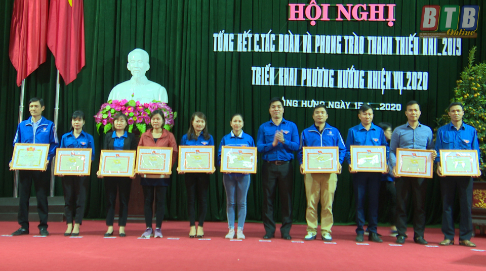 Tại hội nghị, Tỉnh đoàn, Huyện đoàn đã tặng giấy khen cho các cơ sở đoàn, cán bộ, đoàn viên có thành tích xuất sắc trong phong trào đoàn, đội năm 2019.