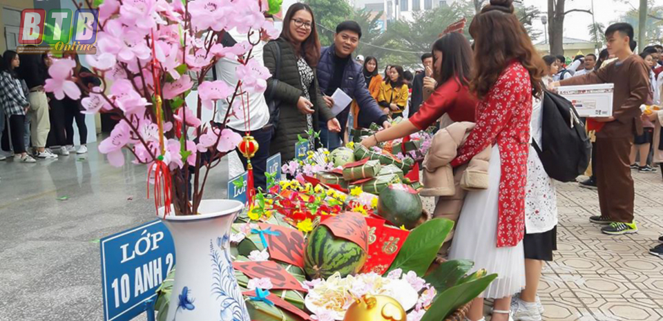 Khi thời gian chạm cửa tháng 12 âm lịch cũng là lúc mọi người nô nức chuẩn bị đón tết cổ truyền. Đến Trường THCS Vũ Đông (thành phố Thái Bình) những ngày cận tết, từ giáo viên đến các em học sinh đều cảm thấy hào hứng vì không khí tết cổ truyền tràn ngập khắp sân trường. Từ nhiều ngày nay, thay vì nghỉ trưa, các thầy cô giáo trong trường đã tỉ mỉ chuẩn bị vật liệu để tái hiện lại phiên chợ quê ngày tết ngay trên sân trường nhằm tạo không gian sắc màu cho các em học sinh có cơ hội trải nghiệm. Ở phiên chợ quê này có những buộc hành, tỏi khô treo lủng lẳng, những chiếc đèn lồng đỏ bắt mắt, hoa mai vàng của đất phương Nam, hoa đào hồng của miền Bắc, thịt lợn, lá dong xanh để gói bánh chưng... Tất cả đã tái hiện được tinh thần ngày tết cổ truyền của dân tộc Việt Nam.