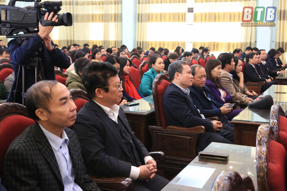 Các đồng chí lãnh đạo tỉnh và đại biểu dự hội nghị gặp mặt đầu xuân cán bộ, công chức, người lao động các cơ quan của Tỉnh uỷ. Ảnh: Thành Tâm