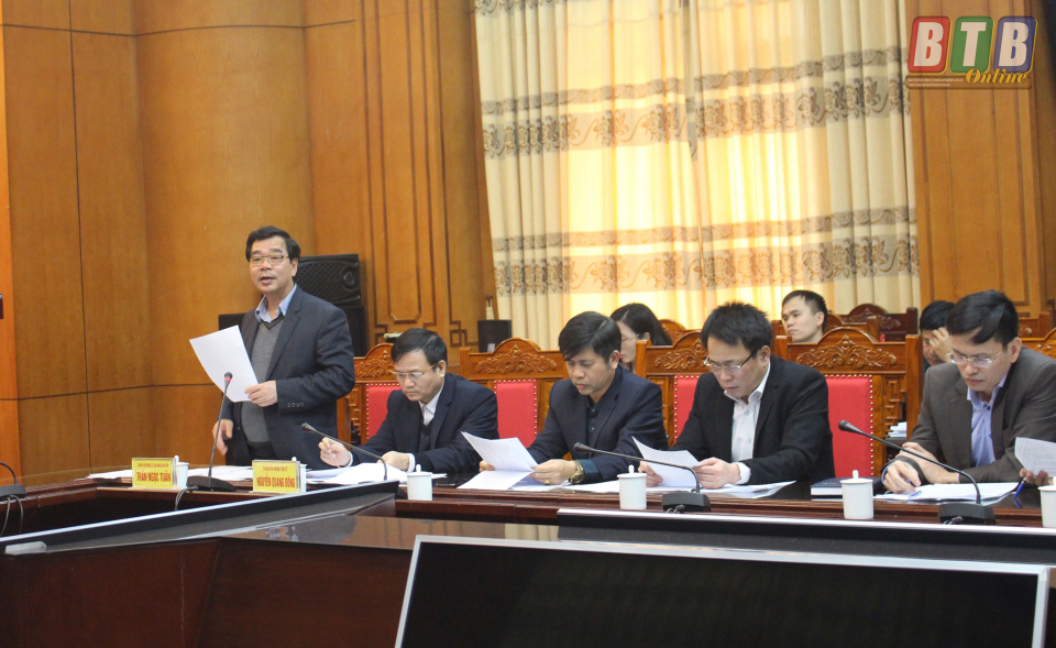 Đồng chí Nguyễn Khắc Thận, Tỉnh ủy viên, Phó Chủ tịch UBND tỉnh phát biểu tại cuộc họp.